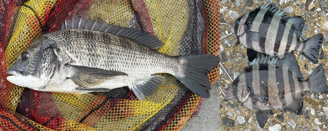 2025年の釣果写真 10月12日 名港8号地、知多内海 浮きフカセ、前打ち クロダイ、サンバソウ 10月11日 名港新川河口 前打ち クロダイ 10月9日 名港新川河口 前打ち クロダイ 10月7日 名港新川河口 前打ち クロダイ 10月5日 静岡県駿河、名港8号地 船落とし込み、浮きフカセ キジ...